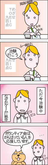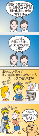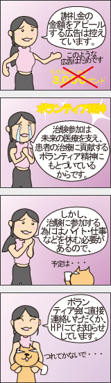 薬の誕生には欠かせないプロセスで、ドラッグストアで売っている花粉症の薬や目薬もすべて、大勢のボランティアのご協力による治験で有効性と安全性を確認したものです。